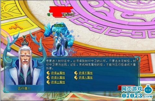 其实很简单,就是去到五行道人这里,来获得五行属性,然后去打克的这个属性的怪就可以了。例如:你可以变水属性去打火的怪,金克木、木克土、土克水、水克火、火克金,这样达到要求后打死五行守卫就可以进去第二关了。见下图: