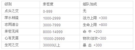 1、组队可获得加成:好友亲密度达到一定级别时,与好友组队可触发额外属性加成。