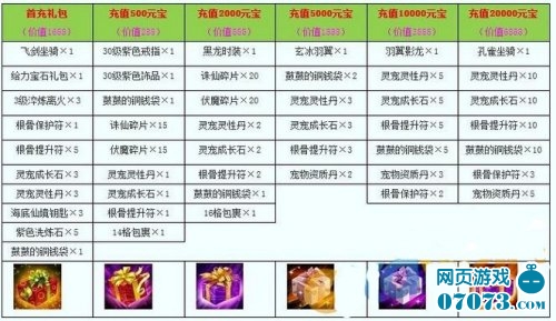 首数首充礼包最值得拥有,因为任意充值都可以免费领取这个价值1688元宝的首充礼包,那怕是1元宝都可以免费领取,当然没有1元宝充的啦,最少也是10元宝,呵呵,我就形象点比喻,嘿嘿~ 首充就送飞剑坐骑,、给力宝石礼包、3级淬炼离火….. 是不是很心动啊,实至名归的丰厚豪礼!所以还是建议大家都务必要拿下这些奖励,可谓是给你的前途铺下了平坦道路啊。