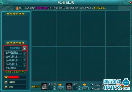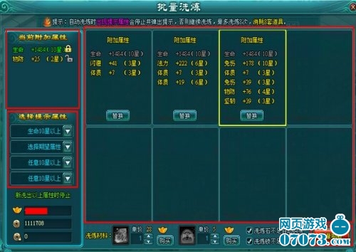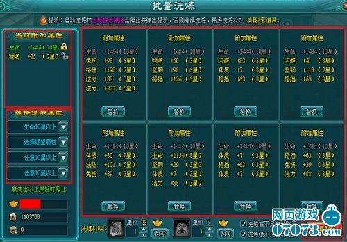 第二步:点击【批量洗练】,设置期望生命星级,和其他属性星级;