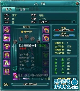当前穿戴的13件装备均为同一强化等级(至少强化6级以上),则可激活对应的装备强化加成属性。如图: