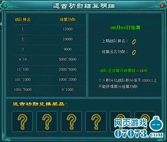 大结:每5周进行一次大结(勋章系统开发完成后结算周期会调整得更短),根据战队积分排名给予奖励,排名越靠前奖励远古功勋越多。