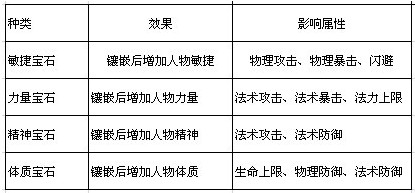 特性宝石几种:法尊、天机专用:法攻、法暴;武灵、幻羽专用:物攻、物暴;法术、物理职业共用:生命、物防、法防、穿透、命中、闪避、坚韧。