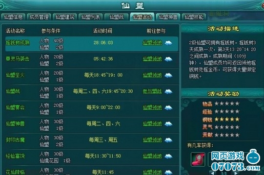 这样下来每天的活动参加跟任务完成就会有上千贡献,基本够仙盟技能升级6次了。
