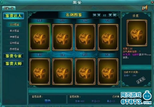 2.图鉴分蓝、紫、橙三种颜色,对应不同的属性加成和奖励(目前只开放蓝色品质);