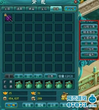 包括:远程仓库、随身商店、装备修理、出售、VIP挂机、VIP福利