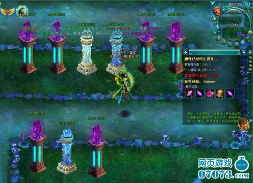 6. 前面6个箭塔全部升到5级以后,剩余的魂气就在祝福塔的对面建一个陨石一个玄冰,在60以前都能升到5级,这样能保证一个怪不漏。