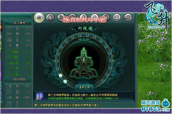 腾讯游戏旗下修真题材动作双修页游飞升修真炼体之法第二元神系统开启,通过灌注真气温养元神可以让玩家角色突破身体极限,提升各项角色属性值,达到肉身成神的极限境界。玩家开启飞升第二元神系统之后还能获得特殊技能,元神境界越高,效果越犀利。