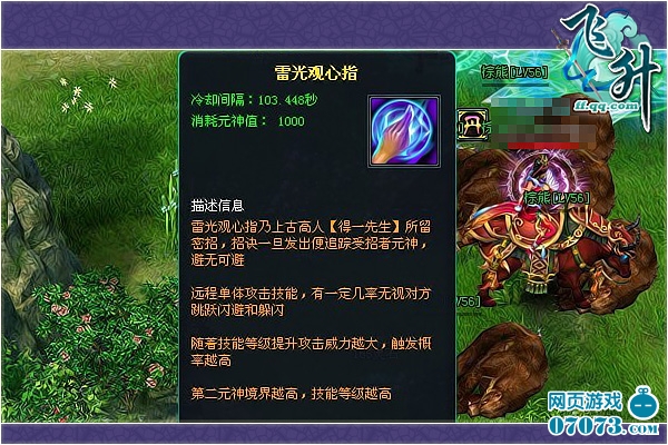 飞升第二元神特殊技能名为“雷光观心指”,虽为单体攻击技,但一定概率无视对手跳闪与躲避的效果实属强悍。该技能随玩家元神境界增加而增强,也随技能等级提升而增大威力。无论是在飞升中PVP还是PVE,都将是一个杀手锏,在对方残血时,暴起发难,或将收到意想不到的效果。不过,发动该技能需要消耗元神值,冷却时间也较长,玩家需要特别注意。