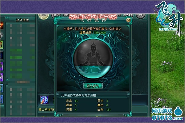 飞升第二元神系统,用真气养元神,获各项属性加成,得特殊密招。每一次灌注真气,都可以向成神之路迈进,只要坚持下去,成神也并不遥远!