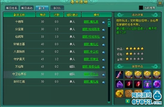 守卫仙界石副本参与条件:角色等级达到50级,建议3个人队伍进入。