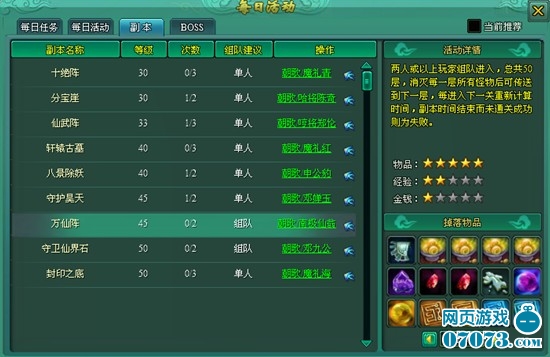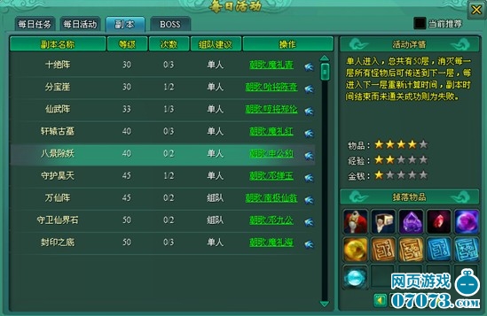 参与条件:角色等级达到40级,只能单人进入。