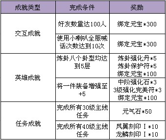 活动期间完成下列交互成就、英雄成就、任务成就,即可获得对应好礼: