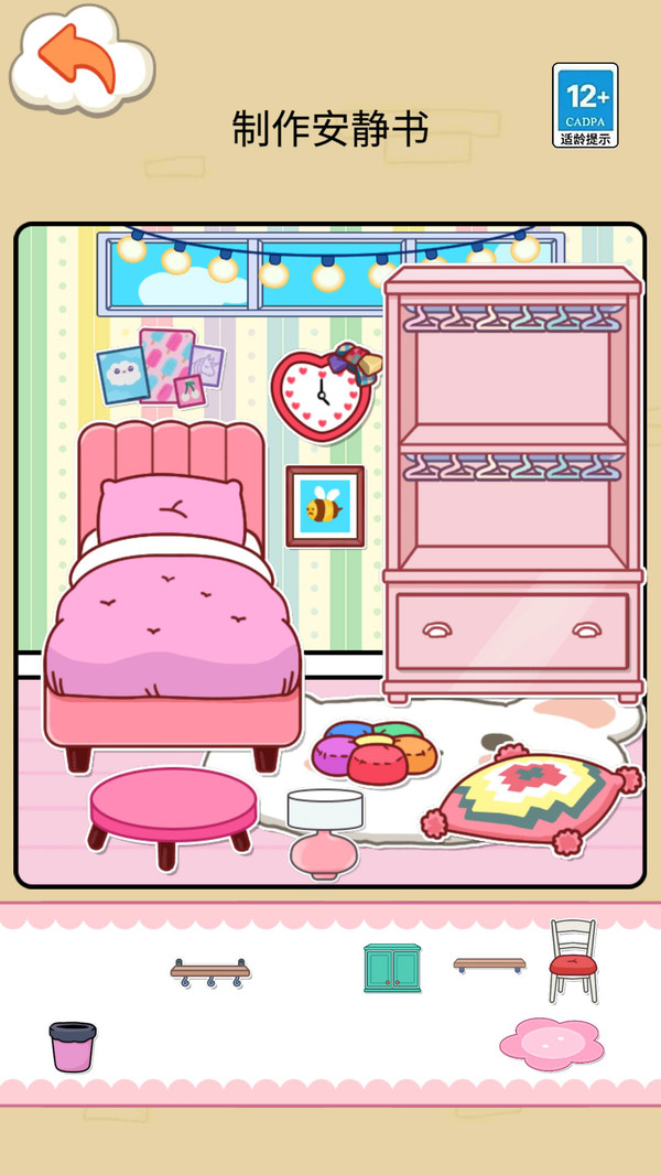 收纳物语DIY是一款画风相当可爱的玩法为安静书收纳的diy小游戏!游戏内ui和角色的设计十分精巧,让喜欢少女心要素的玩家们可以在其中沉浸心情,放松自己一天的劳累,游戏中带有很多休闲娱乐的要素,让所有的玩家可以根据自己的爱好来创造属于自己的收纳安静书!