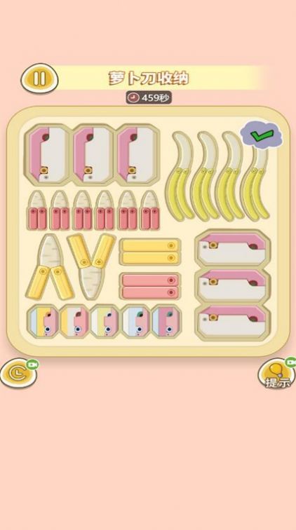收纳达人解压游戏是一款非常轻松愉快的游戏,在游戏中,玩家需要将杂乱的物品整理好,将家居环境恢复到整齐、舒适的状态。游戏中有多种不同的场景和任务,包括家居收纳、办公室整理、行李打包等,每个任务都有不同的难度和挑战,通过游戏中的提示和指导,逐步完成任务,缓解压力!