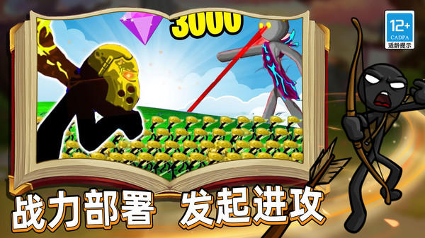 1、你需要不断收集道具雇佣更多的火柴人士兵来提升自己军队的战斗能力。