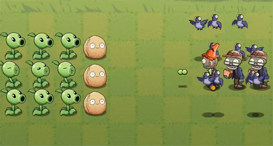 1、用豌豆或竹笋炮解决本体,然后用玉米投手或向日葵保护后排植物免受鸽子啃食