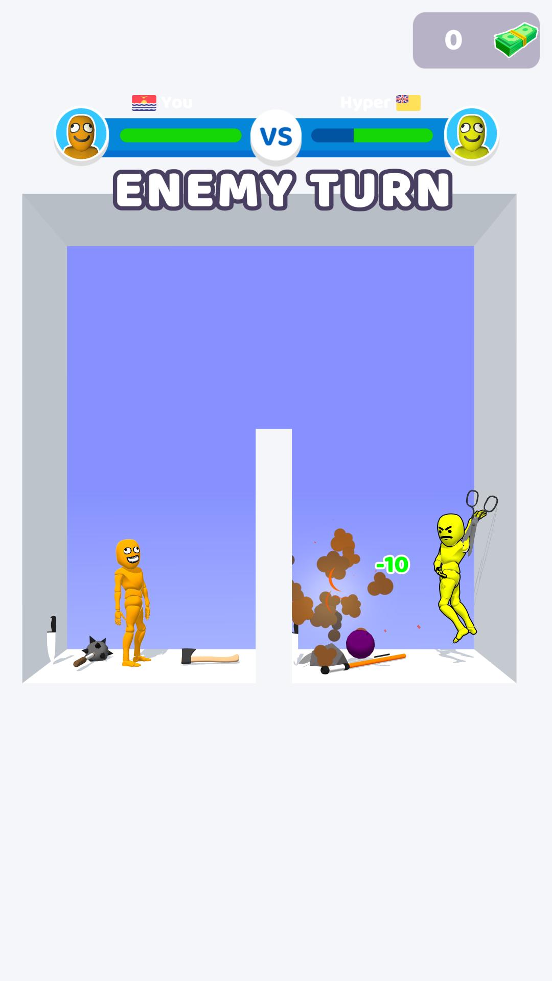 4、玩家通过投掷武器对敌人造成伤害。如果累计伤害超过100.就会被杀死。