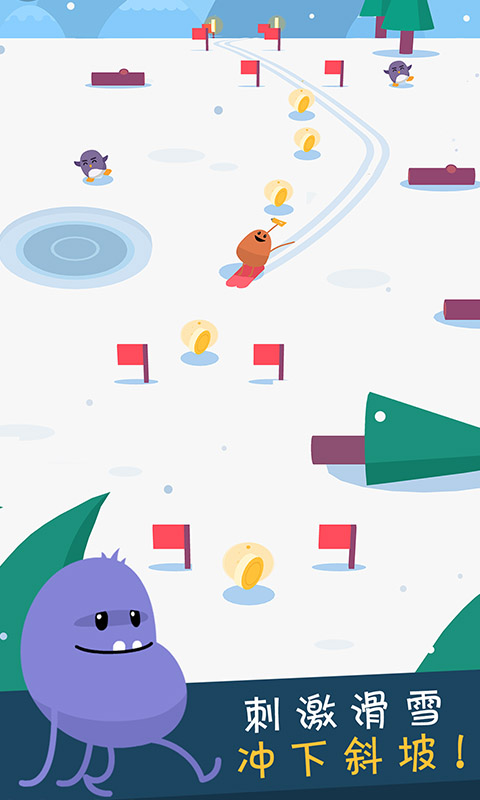 4、让豆子从陡峭的山坡上下来,但要小心那些厚脸皮的企鹅。