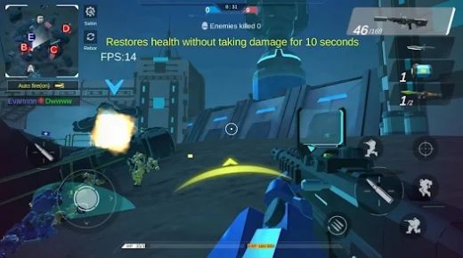 1.操作机甲战士进行射击战斗,灵活躲避敌人攻击,精准命中目标。