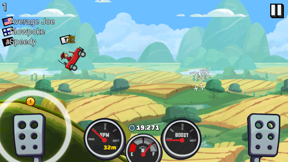 1、使用 20 种以上的车辆冲上山丘吧!赛车、卡车、摩托车甚至是坦克都任您选择!