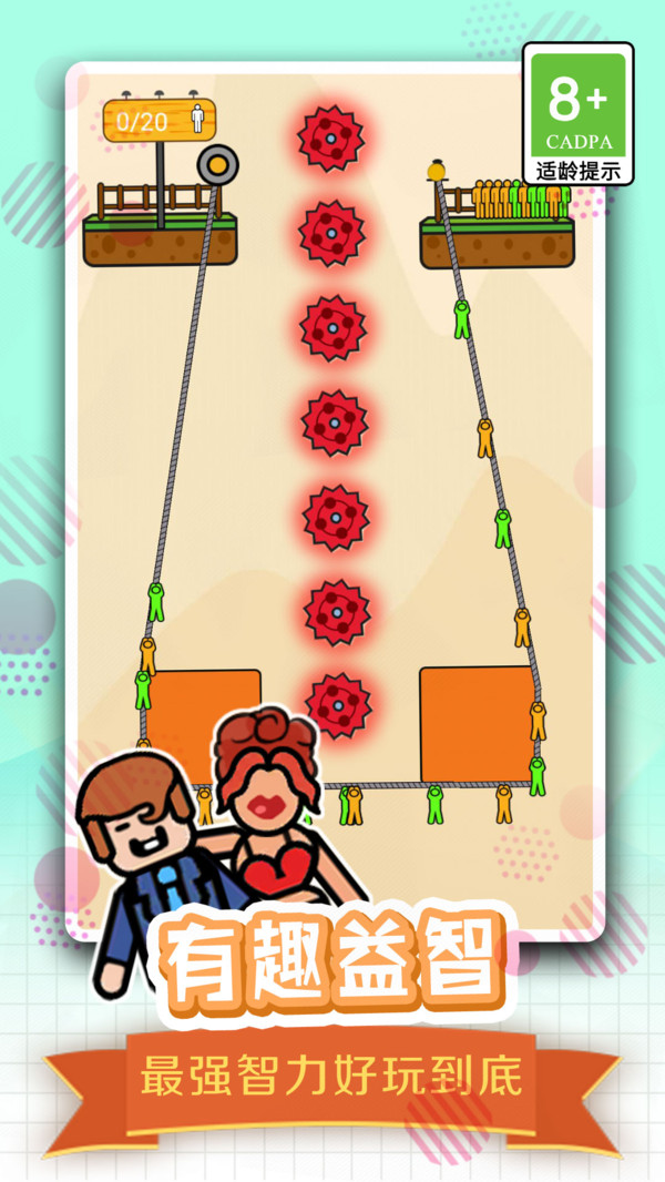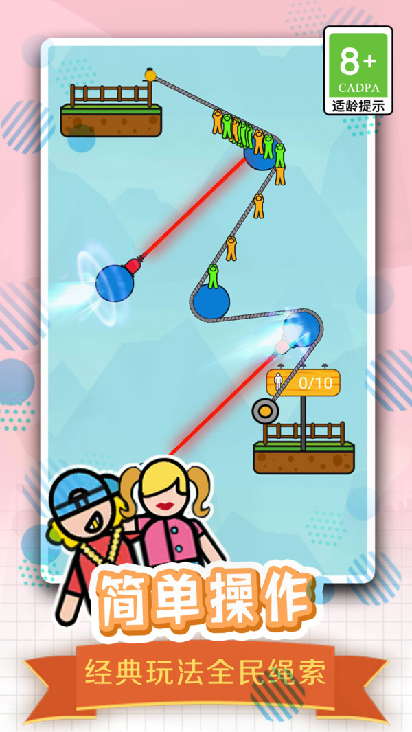 游戏很休闲,拯救全民绳索游戏是很多有趣的游戏关口。