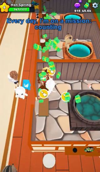 1.根据客户需求新建、升级各类温泉设施。高度模拟的现实经营玩法,让玩家深度体验经营温泉度假村的乐趣。