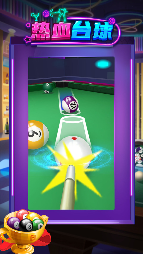 热血台球是一款以台球为主题打造的手游!这款游戏的还原度很高,将现实里面的台球室展现在玩家的面前,一切的台球都是按照物理规则打造,让你一样全新的游戏体验感,玩家在热血台球游戏里面成为各种各样的高手,全新的游戏关卡,努力的成为最强大的选手,横扫一切的高手成为台球场上的真正的高手,各种各样的游戏模式,丰富多样的游戏玩法,全新的3D渲染效果非常的好,逼真的视觉效果带给你身临其境的游戏乐趣!热血台球游戏拥有细腻的外观和出色的手感!