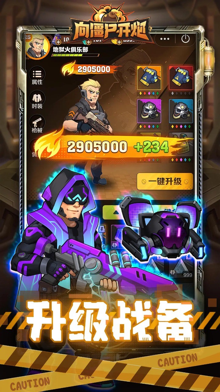 1、这里你需要升级你的武器,在面对不同的僵尸,完整你本身觉醒的技能战斗。