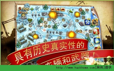 2.将右下角的士兵、飞机、大炮、高射炮拖到地图上的位置即可完成塔楼搭建。右侧是特殊道具,可以拖放以释放出意想不到的强大效果来消灭敌人。