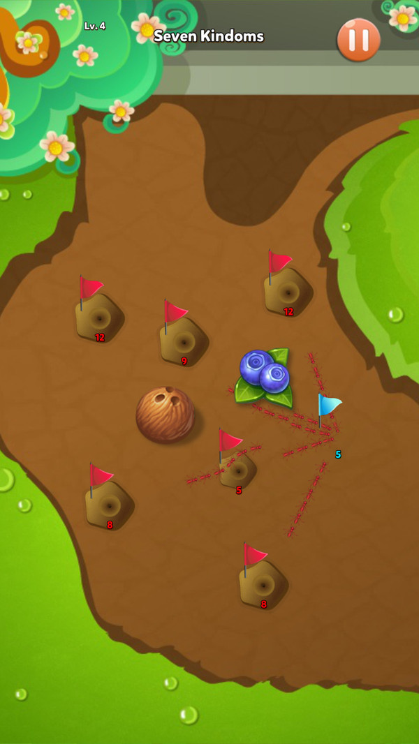 2.争夺领地,观察其他蚁丘的位置,并按照计划移动、合并。