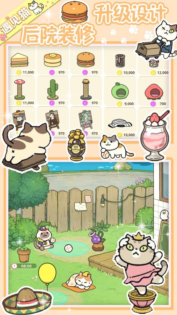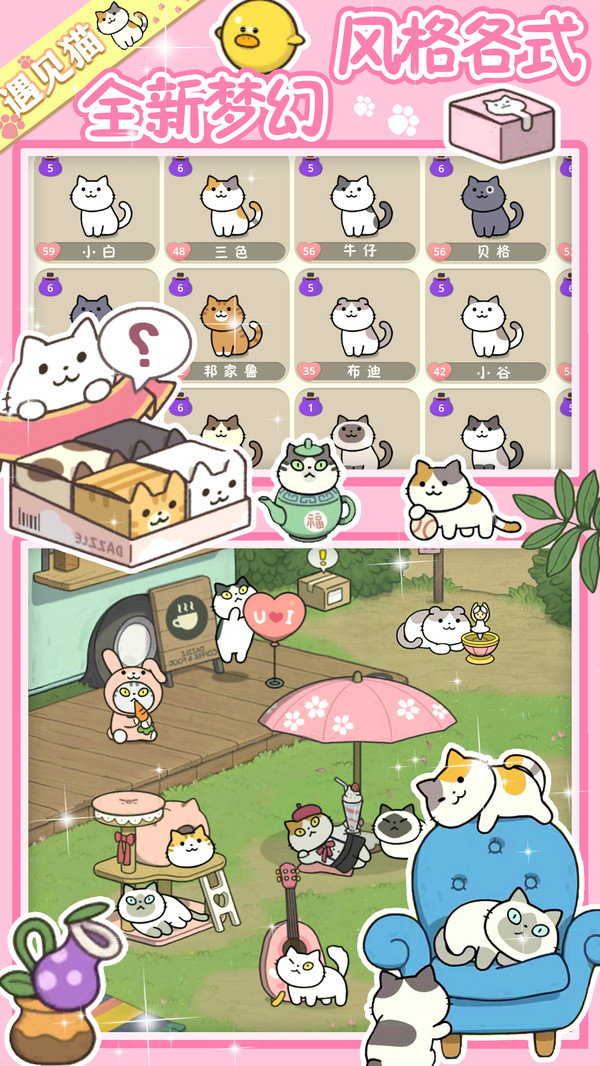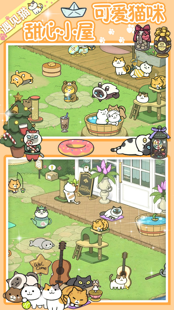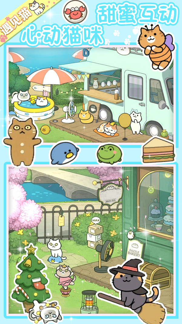 ★装饰卡通梦幻甜心小屋★ 收集珍贵装饰道具,获取不同节日礼品,根据猫咪性格装饰小屋,与小猫们生活在梦幻二次元温馨小屋吧!