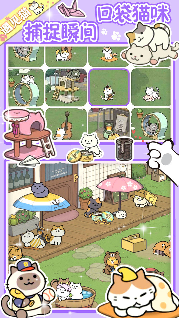 ★吸引口袋可爱猫咪精灵★ 选择美味食物诱惑小馋猫们,获取信任与可爱小猫玩耍互动,成为好朋友!