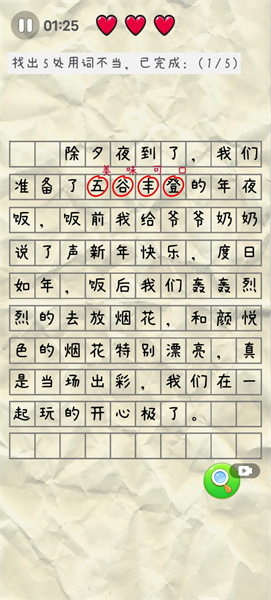 2、限时挑战模式,争分夺秒找出错字,提升专注力与反应速度;