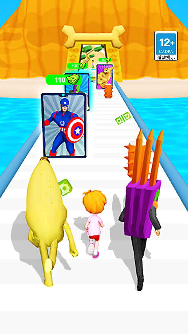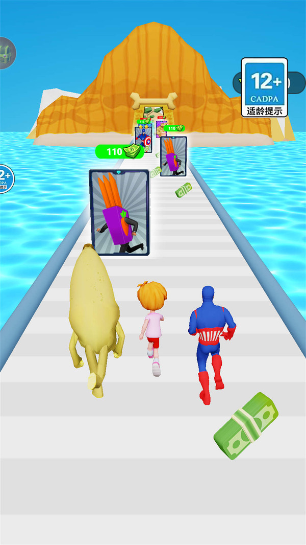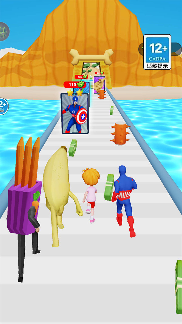 1.玩家控制活泼可爱的香蕉人进行有趣的跑酷。