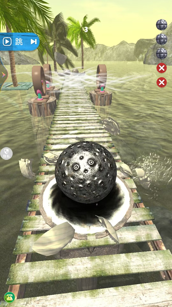 1. 球跳到地板上。游戏玩法简单、轻松、刺激,是一场刺激、没有终点的冒险挑战。