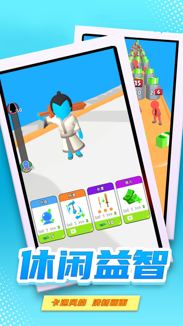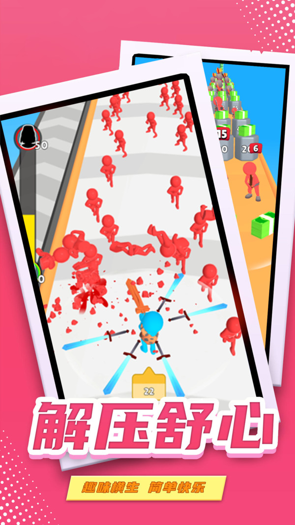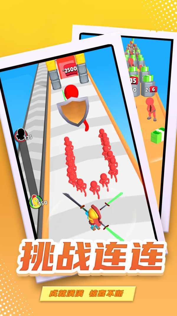在剑斩奔跑里面挥舞着你的宝剑砍向你的敌人,游戏准备了丰富的关卡,层出不穷的挑战带给你无尽的游戏乐趣!剑斩奔跑准备了很大激动人心的关卡,你扮演的是一位挥舞着巨剑的战士,用你强大的武器去消灭关卡里面的敌人,收集掉落的武器来武装自己,充分的奔跑和丝滑的跳跃,旋转你的巨剑和其他的宝剑进行战斗,极大的增加了你角色的力量,不断的提升自身的能力,征服更多的关卡!