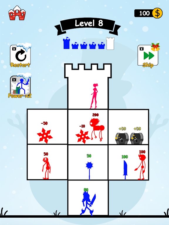 *收集宝石和道具来提高你的能力,让你的火柴人变得更强大,面对更危险的敌人和关卡。