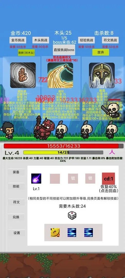 4.收集并装备强大的符文,赋予你的角色额外的属性和策略组合,让他所向无敌。
