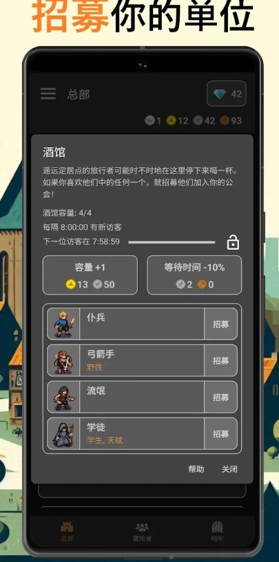 4. 承担风险很简单。招募更多的单位和单位来创建自己的冒险家公会,招募新成员,并拥有许多子类别,以便更好的训练和冒险。