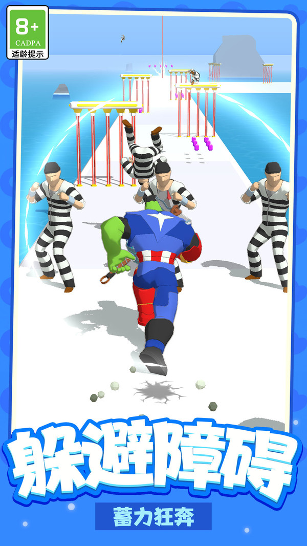 热血冲突是一款卡通风格的跑酷类休闲手游,在这里努力的去冲刺到最后不断的升级来助力玩家成为最强超级英雄!这款游戏将收集,战斗,休闲等等玩法整合到了一起,玩家在赛道上不断地收集超级英雄的服装部件,努力的去继承他们的意志,和那些邪恶力量展开激烈的战斗!全新的角色让玩家来解锁,勇往直前努力的击败邪恶势力!超级丰厚的任务奖励,助力玩家一步步变得更强,成为超级英雄吧!