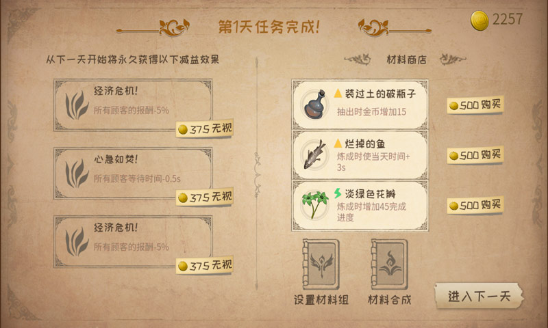在这款游戏当中,因为他难度上比较的高,所以说我整体的游戏体验其实并没有那么的优秀,按照我个人的游玩体验来讲,我最多给到他三星的游戏评价。虽然说这种具有炼金元素的游戏的确是非常吸引玩家,但是其紧张的游戏氛围不适合这类型的玩法,尤其是对于新手玩家来讲经营的天数最多也就到达一两天左右,很容易出现失败感的堕落。