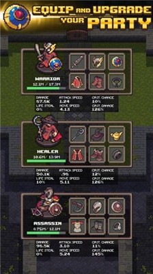 用你的上帝之手攻权力来指导你不那么闲置的英雄找到一个像素地牢隐藏的宝藏,确保您的空闲英雄有足够的装备,卫生和物品,以保护他们免受某些厄运。