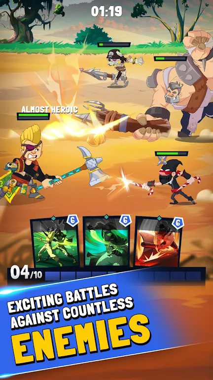 英雄般奇幻战斗(Almost Heroic)是一款非常好玩的动作战斗冒险闯关游戏。多样的英雄对决,华丽的战斗过程,不断连招技巧。提升自己的战斗力。游戏节奏非常的快。卡通的游戏画风,欢快的背景音乐,解锁更多的武器,大大提升自己的实力。感兴趣的玩家小伙伴不妨来下载吧!相信不会让大家失望的!