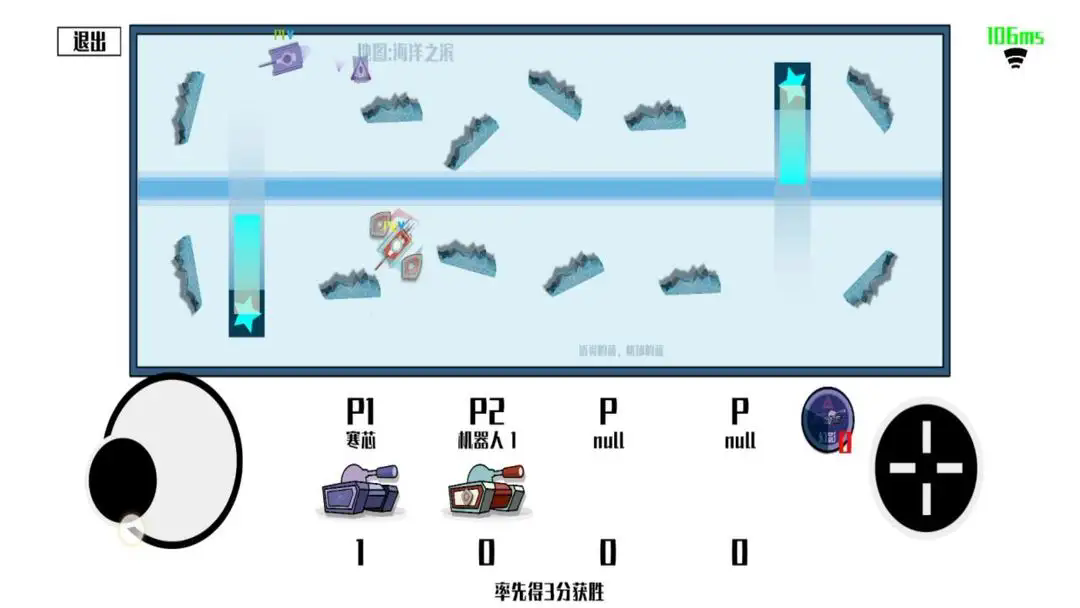 9、左下角控制移动,右下角控制角度,点击射击攻击敌方坦克。
