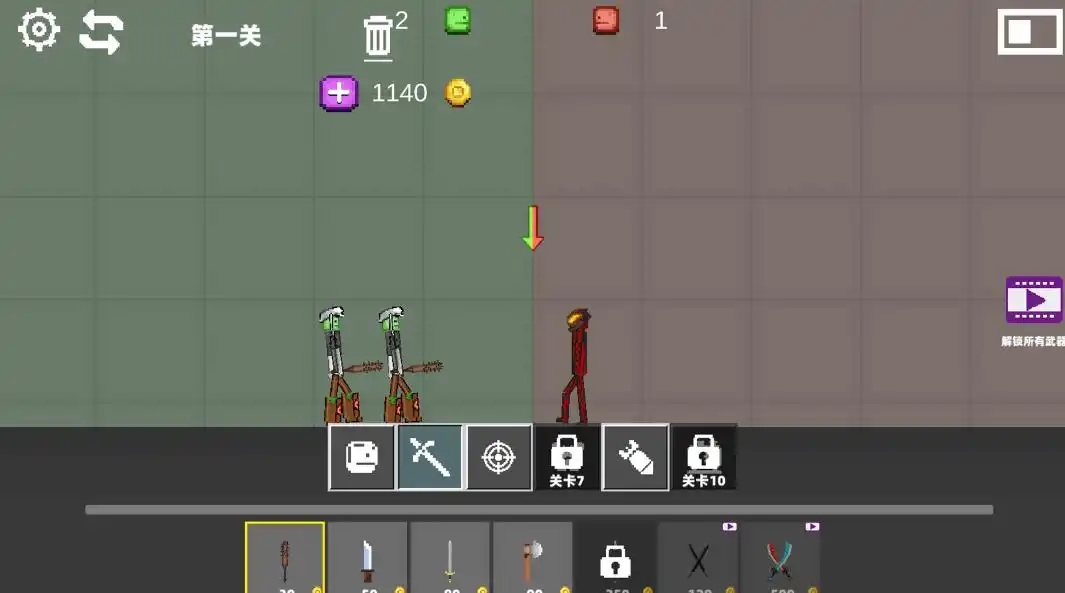 1.与多种火柴人对战,使用多种武器自由竞技,尝试不同的战斗模式。