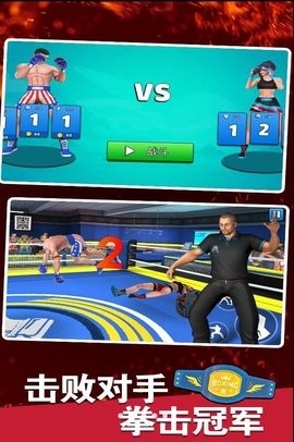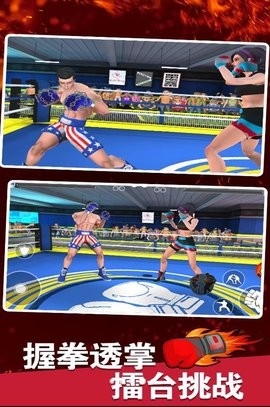 拳击明星对决是一款激情的格斗挑战游戏,感受其中拳拳到肉的自由搏击,有着痛快的击打感,让您很好的磨砺自我,在擂台之中挑战各种实力强劲的对手们,感受观众们的喝彩和欢呼,取得胜利之后能够得到相应的奖励,同时也会遇到更加厉害的对手哦,学习全新的格斗招式!