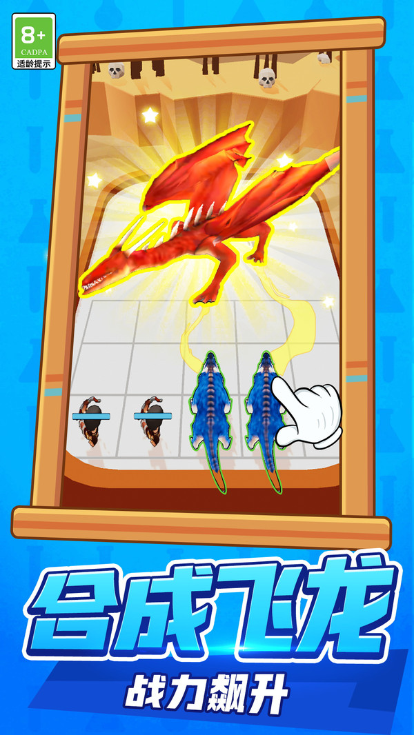 进击的格斗家是一款主打合成玩法的休闲类小游戏,在这里玩家需要控制着自己的飞龙和不同的敌军展开战斗,而且在战斗之后能够收获丰厚的奖励,而且在这款游戏之中准备的飞龙种类是超多的,每一种飞龙都拥有不一样的属性和技能,在游戏开始的时候使用最为基础的飞龙进行两两合成,不断的合成就能召唤出高级飞龙,而且还有其他的职业例如传奇弓箭手,流浪魔法师!是你闯过大陆的好帮手!