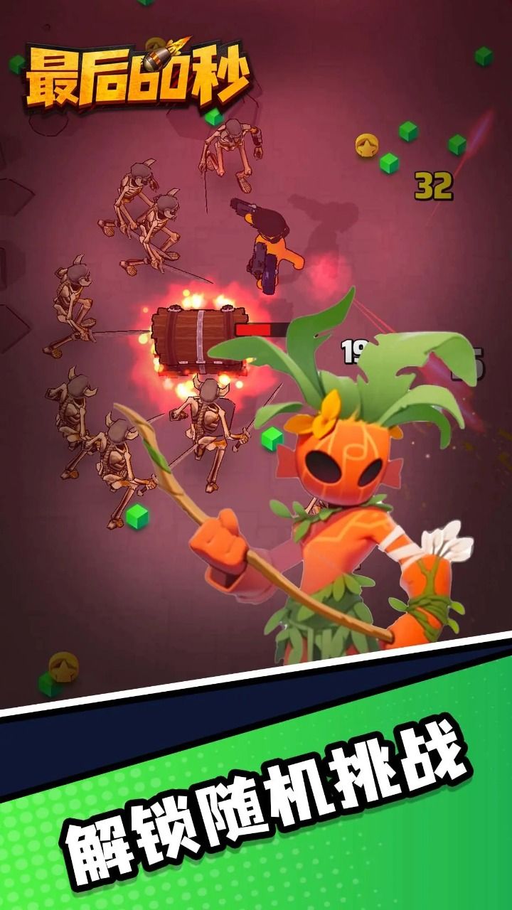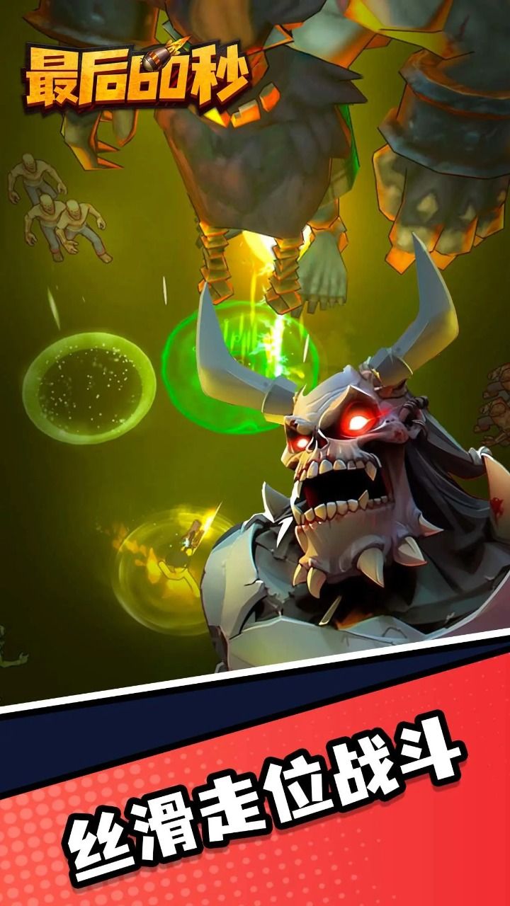 3. 结合各种武器和技能,你可以在众多怪物中生存60秒。