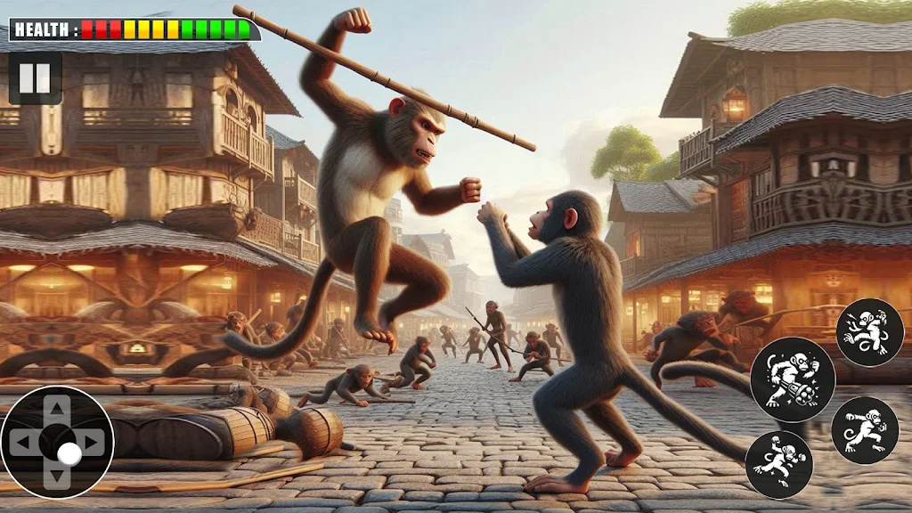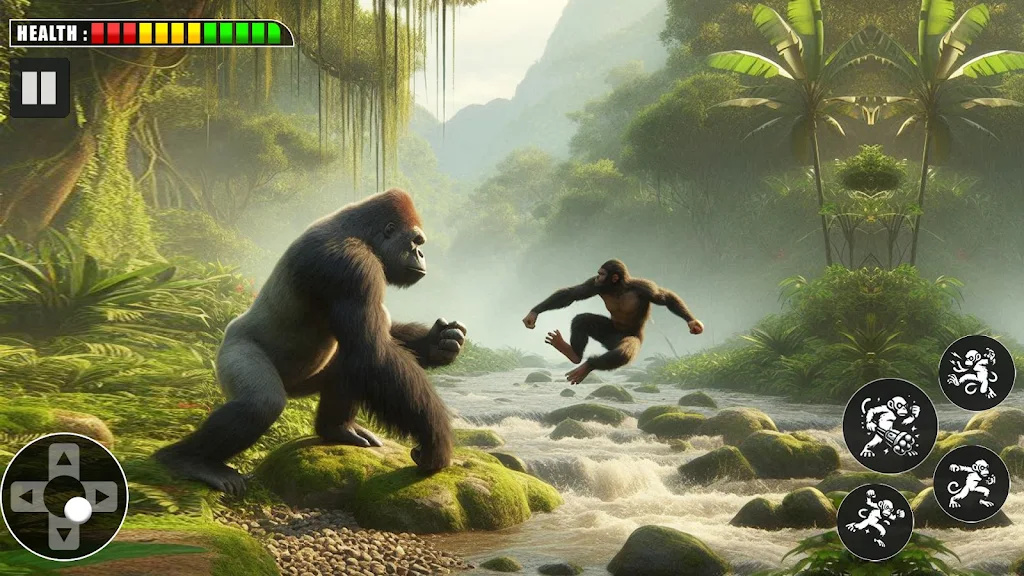 这是一款玩法非常有趣的动作格斗游戏。游戏中,玩家控制一只猴子,在丛林中进行无尽的冒险。玩家还可以参与游戏竞技场,在丛林中生存。你必须打败其他猴子。感兴趣的玩家可以下载尝试一下。在这场愤怒的大猩猩游戏丛林战斗中体验猴子和野兽大猩猩之间的国王战斗大猩猩游戏。在这款大猩猩奔跑的丛林逃脱游戏中,控制一只勇敢的大猩猩,翱翔于天空。参加竞技场中的猴子战斗并赢得愤怒的大猩猩格斗游戏的战斗。